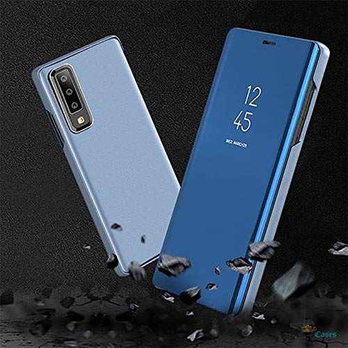 Other - جراب كلير فيو استاند مرايه بدون سينسور وليس ذكي لسامسونج ايه 7 - 2018 - ازرق، لسامسونج جالاكسي A، حافظة، سيليكون