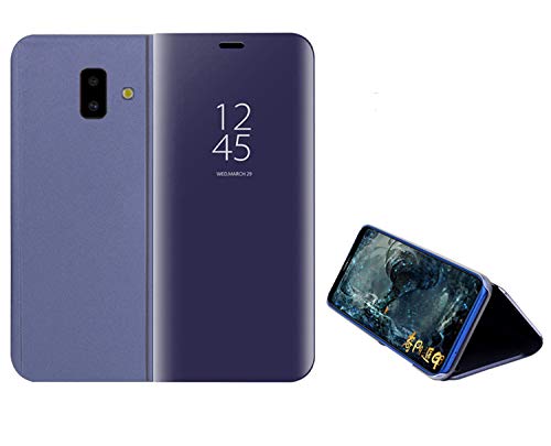 Generic - جراب كلير فيو مرايه استاند بدون سينسور ولا يعمل سمارت لهاتف سامسونج جيه 6 بلس 2018 - بنفسيجي