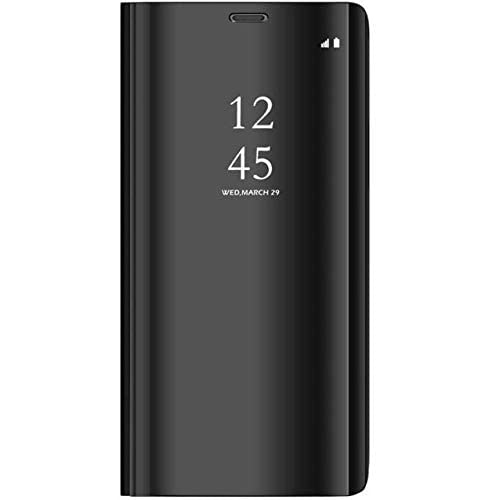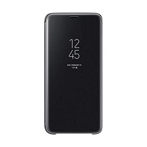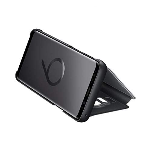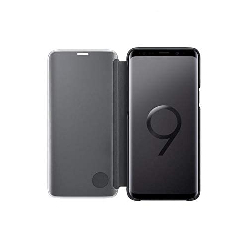 Generic - جراب كلير فيو مرايه استاند بدون سينسور ولا يعمل سمارت لهاتف سامسونج اس 9 بلس - اسود، سيليكون
