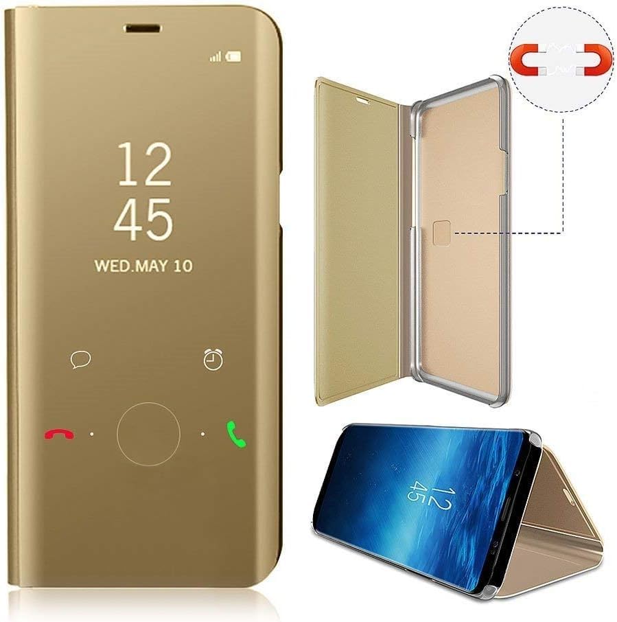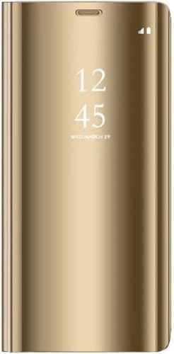 Generic - حامل شفاف للنافذة بتصميم رفيع قابل للطي لحماية الجسم بالكامل لموبايل اوبو A53-A33 كتاب فاخر - ذهبي حافظة بسيطة بلاستيك