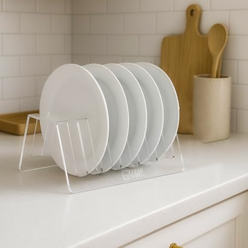 CLEAR WING - حامل عرض اطباق اكريليك شفاف من كلير وينج مكون 6 طبقات، حامل ادوات المائدة، رف عرض للاطباق، رف اعداد