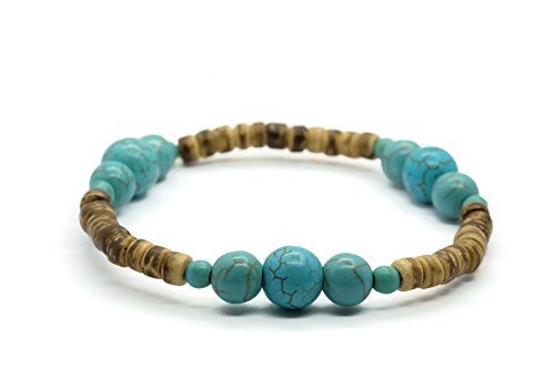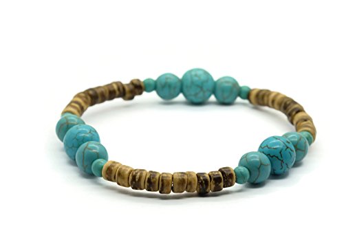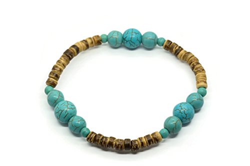 BrownBeans Wood & Beads Jewelry - (مبيعات التصريف) BrownBean، للجنسين عارضة ملابس ركوب الأمواج الخشب ، سوار خرز قابل للتمدد (CBCT5082)