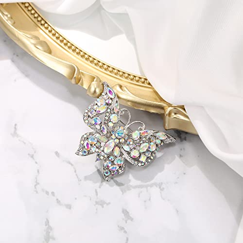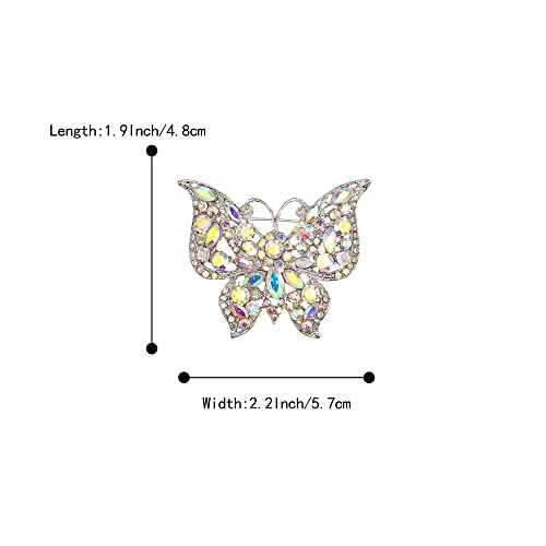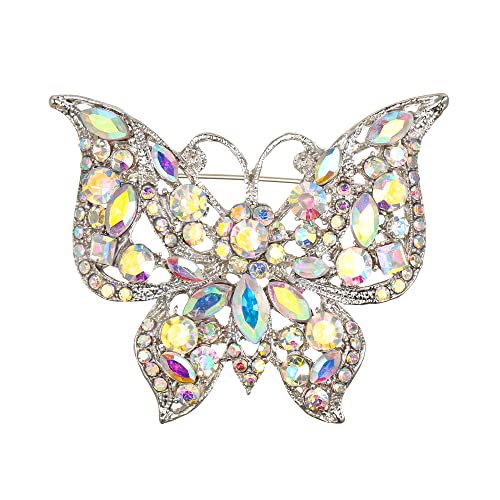 Clearine - بروش بشكل فراشة كريستال عصري وعتيق مزين بأحجار الراين من كليرين للملابس بلون فضي قزحي, كريستال