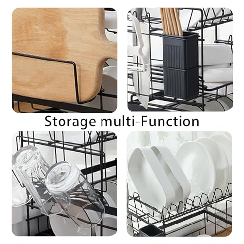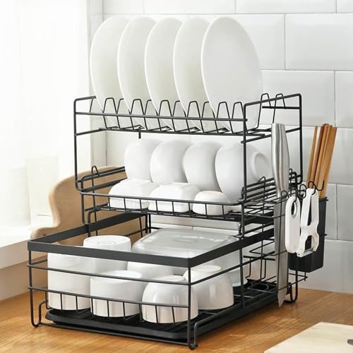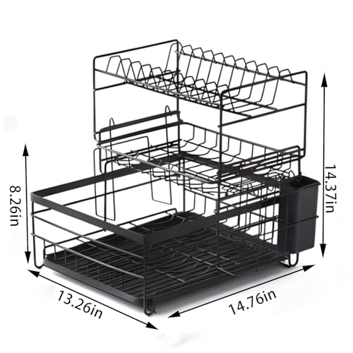 - 【موفر للمساحة】يتضمن رف تجفيف الأطباق المكون من 3 مستويات ما يلي: رف أدوات مائدة وحامل أطباق وحامل سكاكين وحامل لوح تقطيع ولوح تصريف قابل للفصل. كما أنه يتميز بتصميم قابل للتجفيف ويمكن تنظيفه في غسالة الأطباق. مصمم خصيصًا لتوفير المساحة في مناطق الطهي والتنظيف. هذا الرف يعد اكسسوار لا غنى عنه لحفظ جميع أدوات المطبخ وتلبية احتياجاتك اليومية.