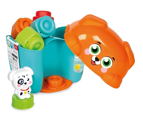 Clementoni - لعبة جردل مكعبات الكلب والجرو كليمي 17769 من كليمنتوني، مكعبات ناعمة لعمر 6 شهور، مكعبات بناء قابلة للغسيل، ألعاب وأنشطة التعليم المبكر، مصنوعة في إيطاليا، متعددة الألوان