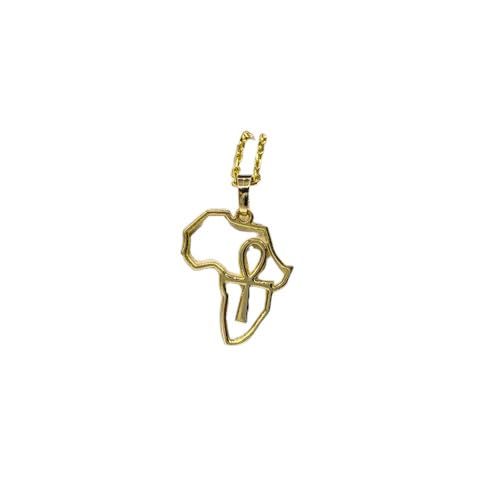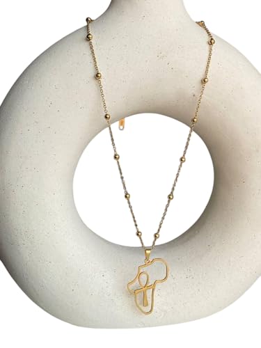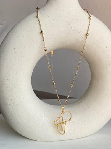 Generic - قلادة من الستانلس ستيل المطلي بالذهب عيار 316l بتصميم افريقيا مع مفتاح الحياة من كليوباترا - مصنوعة يدويا - افضل هدية للنساء/الرجال، مجوهرات.