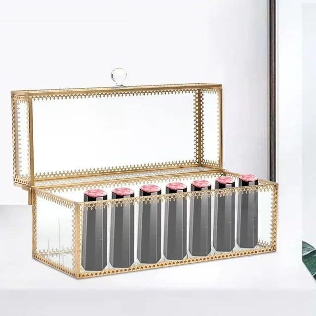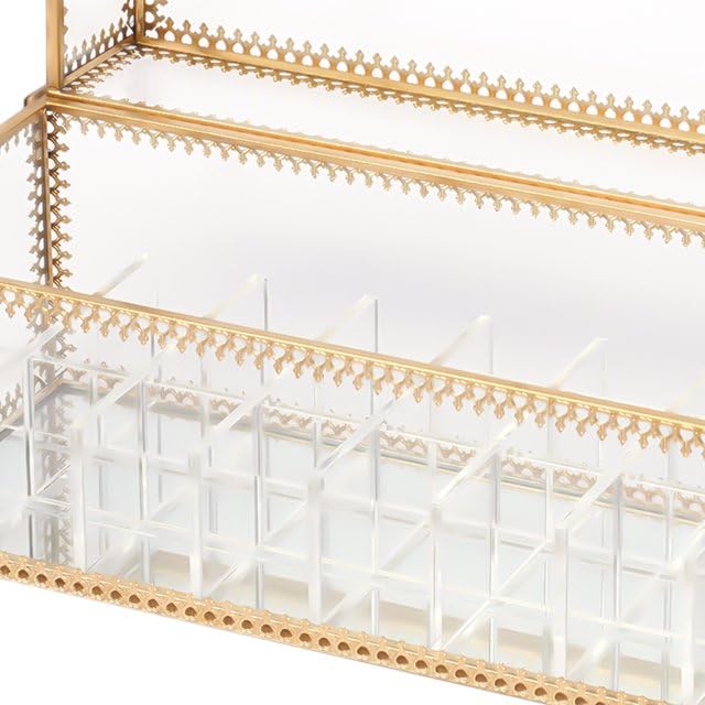 Generic - ذهبي كليرك - منظم (الابعاد). ساحر وفاخر. منظم زجاج زاويا معدن، تقسيم قابل للإزالة. مثالي للمكياج أو المجوهرات. جودة مذهلة. المنتج المثا - من جينيريك