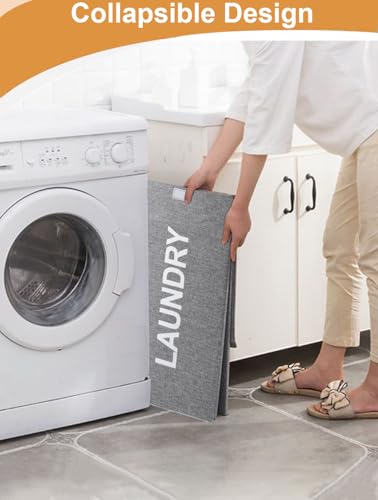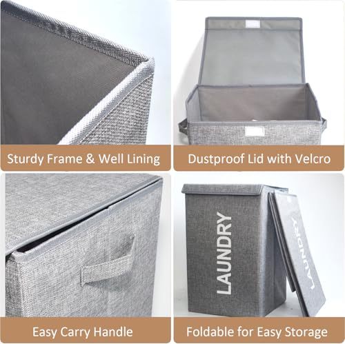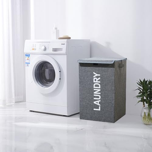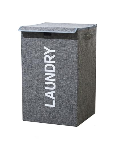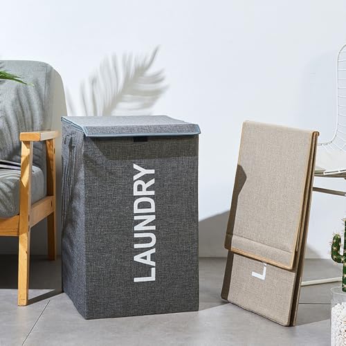 Clesante - سبت غسيل لاندوري مع غطاء قائم على الأرض قابل للطي مع مقابض، لحفظ الملابس المتسخة مناسب للحمام وغرفة النوم وغرفة المعيشة من كليسانتي، سعة 58 لتر، رمادي