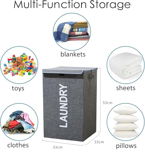 - سعة كبيرة 58 لتر مع غطاء: مع الحجم الكبير 53 × 33 × 33 سم، توفر سلة الغسيل مساحة واسعة لحمل الملابس والفوط والألعاب والبياضات لجميع أفراد الأسرة. تتمتع سلة الملابس المتسخة بمقاومة للتمزق أو التشوه حتى عند تعبئتها حتى الحافة، مما يوفر حلاً مناسبًا لأيام الغسيل المزدحمة. هذه السلة مزودة بغطاء للمساعدة على منع قطتك أو كلبك الأليف من القفز.