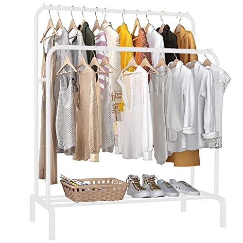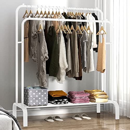 Clewiltess - رف ملابس مستقل بعمود مزدوج متعدد الوظائف لغرفة النوم من كلويلتيس، بلون أبيض