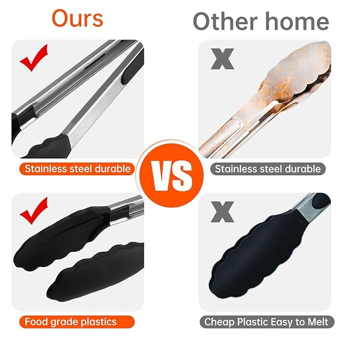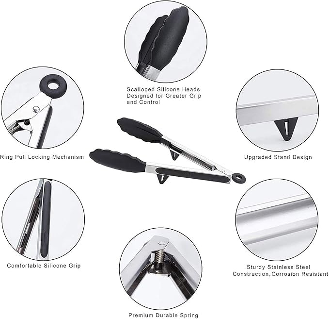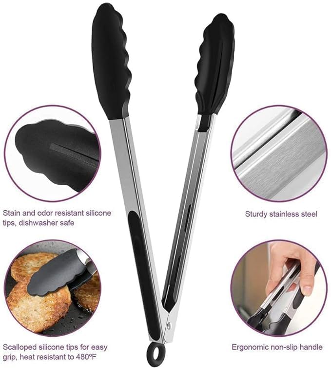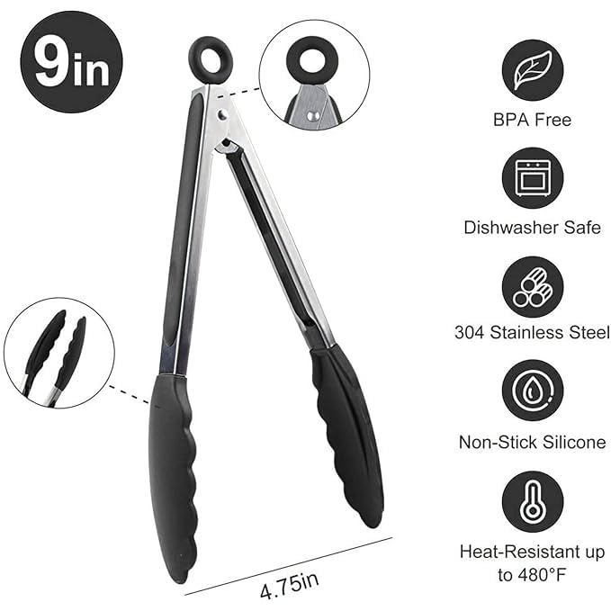 - 🔪【سهل الاستخدام】 المقبض مبطن بالسيليكون، رائع لمسند الإبهام ويضمن قبضة وتحكم رائعين. طرف ملقط السيليكون يعيق الحرارة ولا يخدش الطبق. سهلة الغسل وآمنة للغسل في غسالة الأطباق.