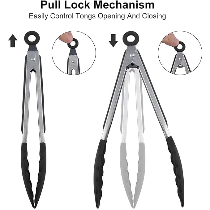 - 🔪【آلية قفل مريحة】تتميز مساكة الطعام للمطبخ هذه بآلية قفل، وتشغيل سهل للغاية. ببساطة، أمسِك مساكة الطعام المفتوحة وأغلقها، ثم اسحب اللسان إلى الخارج لقفلها، وادفع اللسان إلى الداخل لإعادة فتحها والتقاط الطعام. تحافظ آلية القفل على مساكة الطعام للشواء رفيعة وآمنة لسهولة التخزين في الأدراج أو حوامل الأدوات عند عدم الاستخدام. أطراف حلقية عملية تجعل تعليقها في مطبخك أمرًا سهلًا حتى تتمكن من الوصول إليها بسهولة.
