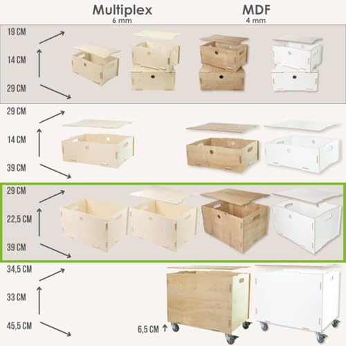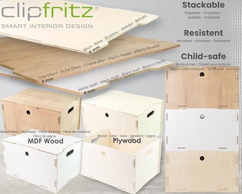 clipfritz - صندوق خشبي بغطاء من كليبفريتز، مقاس L، خشب البتولا الرقائقي، حوالي 40 × 30 × 23 سم، صندوق تخزين مع غطاء، صناديق خشبية مع غطاء، صندوق خشبي، قابل للتكديس