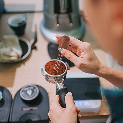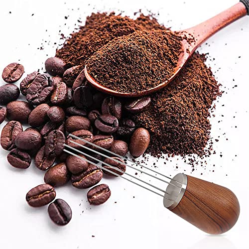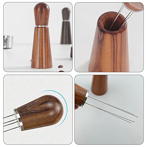 CLIUNT - اداة تقليب قهوة اسبريسو من كليونت 4 ابر القهوة 0.7 ملم ابرة العبث خلط دبليو دي تي مع مقبض وقاعدة خشبية تستخدم لمنع المطحونة الخبز بني ستانلس ستيل