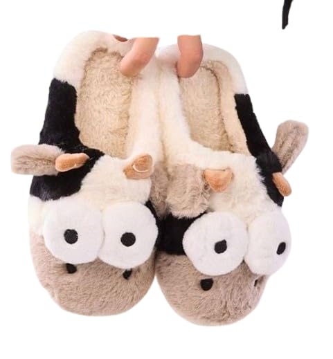 Generic - شبشب منزلي لكلوك اطفال شتوي على شكل بقرة، فرو ناعم، مقاسات ٢٤-٣٥، أبيض ورمادي وأسود
