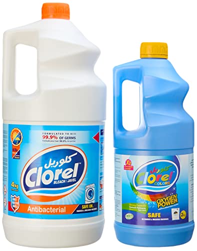 Clorel - مبيض ملابس من كلوريل، 4 كجم مع مبيض ملابس ملون 2 كجم