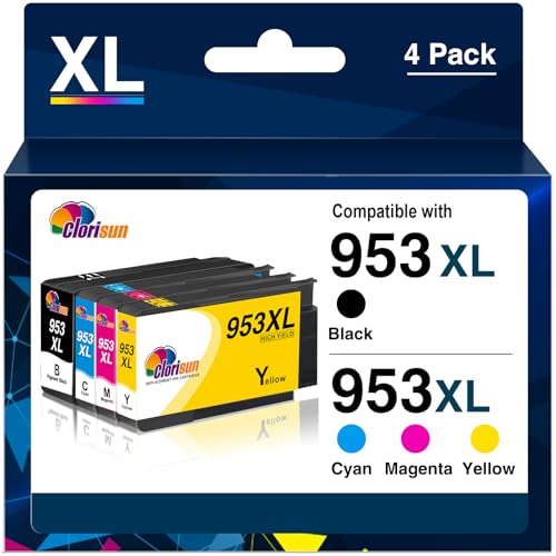 Clorisun - كلوريسن خراطيش حبر 953XL متعددة لخراطيش حبر اتش بي 953XL 953 XL اتش بي 953 اتش بي اوفيس جيت برو 7720 7740 8710 8715 8218 8720 8210 8725 8728 8730 8740 عبوة من 4 قطع