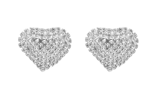 Generic - اقراط من الستانلس ستيل على شكل قلب مرصعة بالماس الصناعي للنساء - ابيض