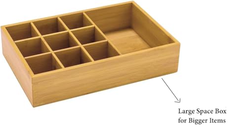- تصميم موفر للمساحة: درج التخزين المصنوع من البامبو جيد لتوفير مساحة لخزانتك ودولابك وخزانتك. يحسن استخدام مساحة الدرج بشكل كبير ويوفر الوقت عند العثور على ضرورياتك اليومية