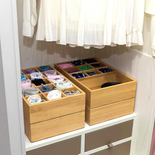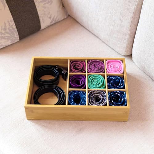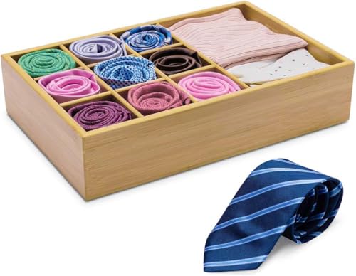 UHUD CRAFTS - منظم أدراج الخزانة، 10 أقسام - مقسم أدراج، منظم خزانة وصندوق تخزين للكرافتات وحمالات الصدر والسكارفات والسراويل الداخلية والشرابات والمجوهرات - منظم تخزين لغرفة الملابس وغرفة النوم - طبيعي
