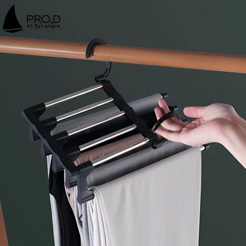 - إن التصميم ليس مجرد جماليات ، بل يزيد أيضًا من مساحة الخزانة. بتصميم 5 طبقات ، يمكن أن يحمل ما يصل إلى 5 بنطلون في وقت واحد ، مما يتيح لك استخدام المساحة الرأسية بفعالية. يساعدك هذا التصميم المبتكر في الحفاظ على خزانة الخاص بك مرتبة ومنظمة ، مما يسهل العثور على ملابسك والوصول إليها عند الحاجة.