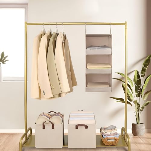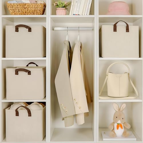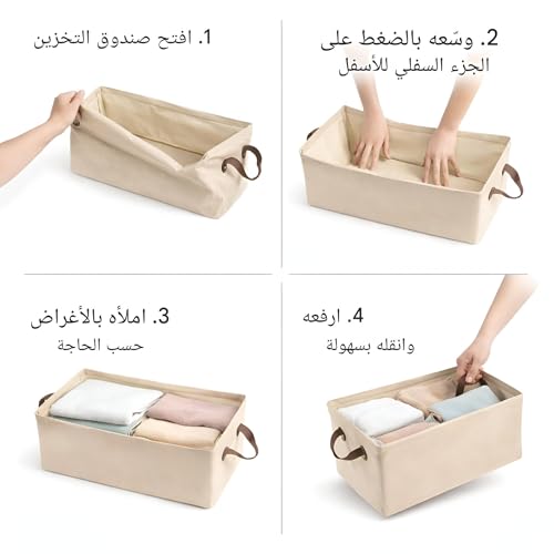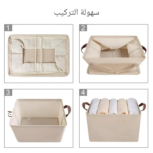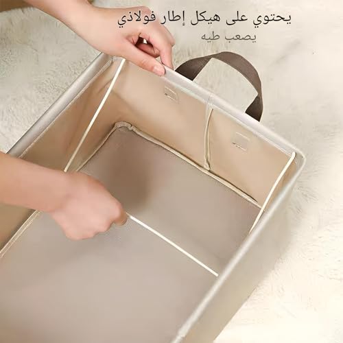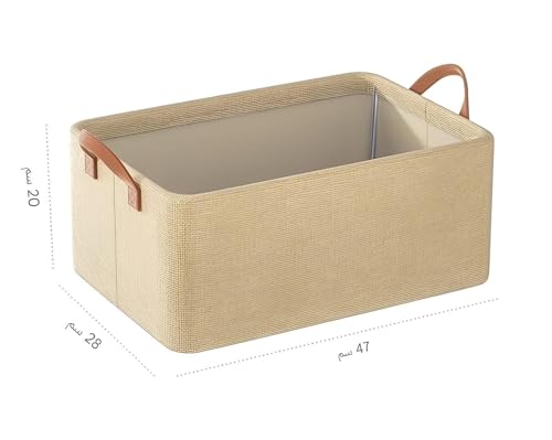 Generic - صناديق تنظيم الخزانة - صناديق تخزين قماشية مستطيلة باللون البيج، 47 × 27 × 20 سم، تصميم متين قابل للطي مع حافة معدنية للاستخدام على الرف (3 قطع)