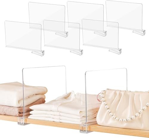 Generic - فواصل رفوف لتنظيم الخزانة (6 قطع) لتنظيم مثالي وهادئ لملابسك مع إمكانية إزالة الفاصل بسهولة بدون تلف للأسطح