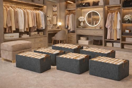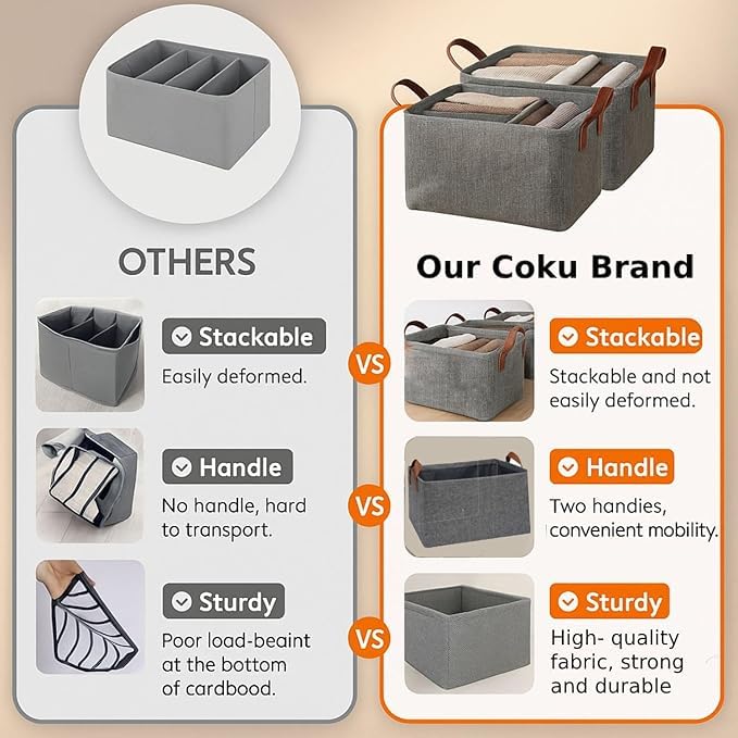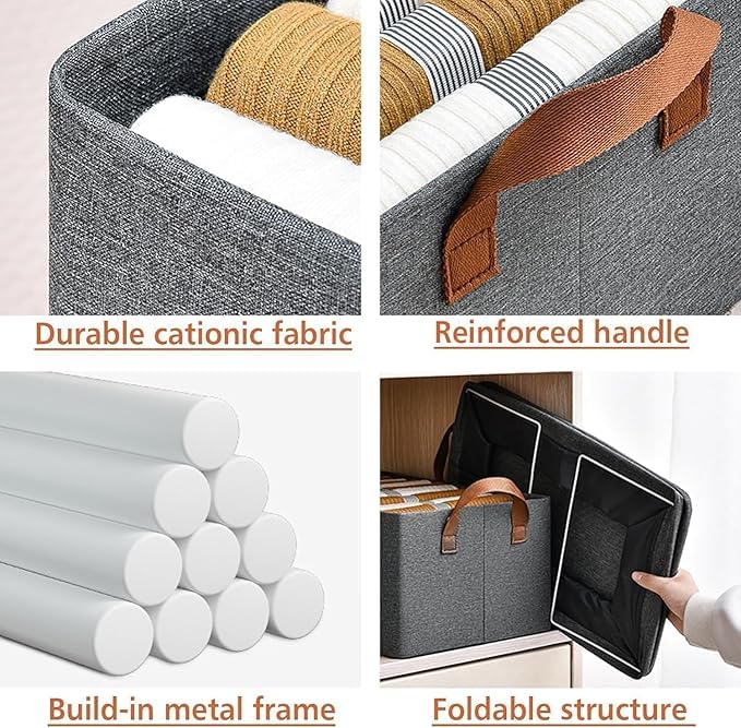 - قماش متين مع مقابض معززة ✋، مصنوع من قماش عالي الجودة مع مقابض جانبية قوية لتسهيل السحب والرفع والتنظيم على رفوف الخزانة.