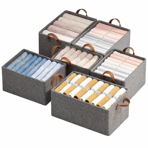 Generic - منظم خزانة للملابس، صناديق تخزين قماشية بإطار معدني ومقابض، منظمات رف مستطيلة للبنطلونات، الجينز، والسترات، طقم 3 قطع، رمادي (6)