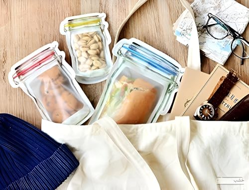 - تم تصميم حقيبة مرطبان المربى المزودة بسحاب لتوفير حل عملي وأنيق لتخزين العناصر المختلفة، خاصة الأعشاب والتوابل، مما يضمن بقاء مكوناتك طازجة وعطرة لفترات أطول.