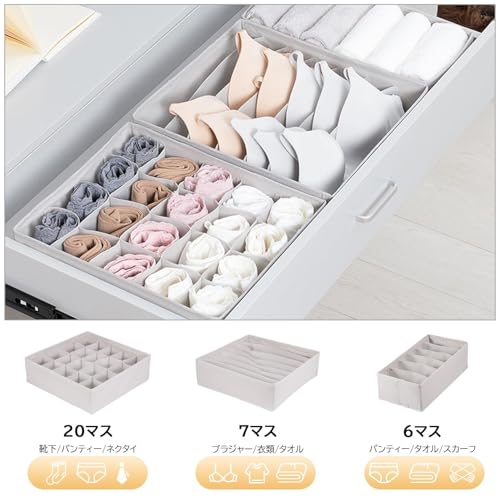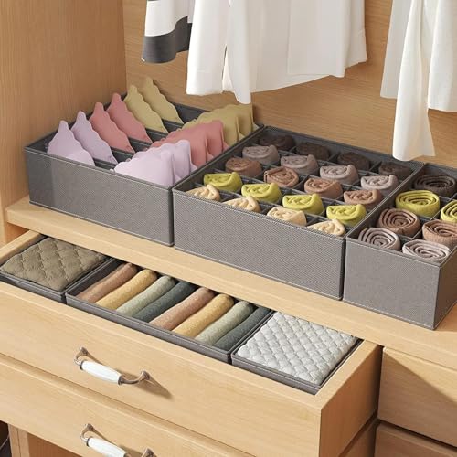 Generic - منظم أدراج الملابس والملابس الداخلية مع فاصل خزانة للجوارب والأوشحة وصناديق تخزين قابلة للغسل والطي من القماش غير المنسوج باللون الرمادي من أجل الأناقة