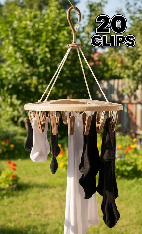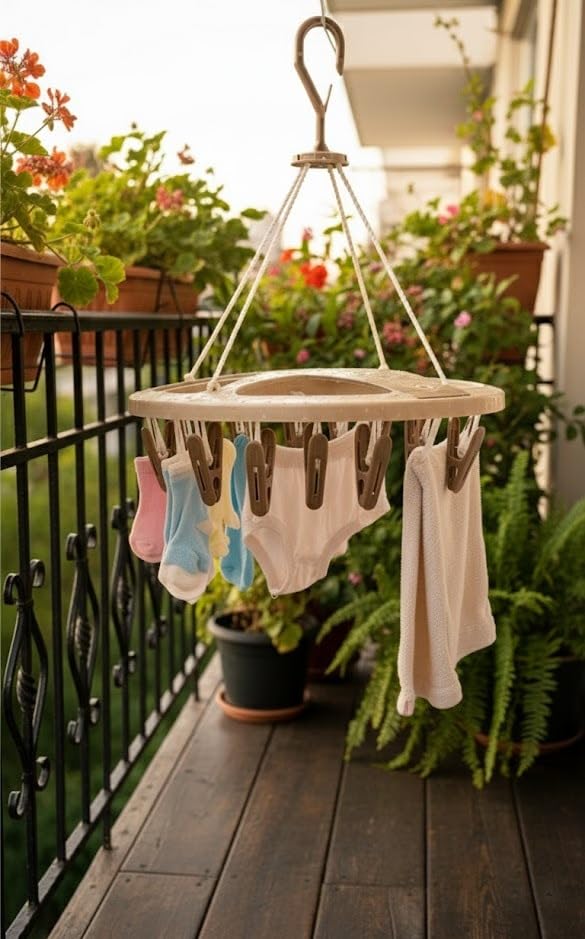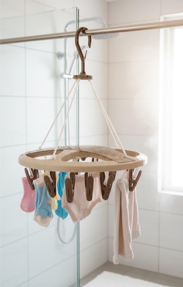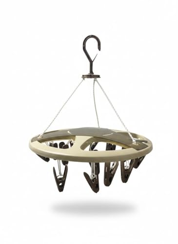 Generic - منشر غسيل ملابس داخلي بلاستيكي معلق مع 20 مشبك، شماعة غسيل دائرية قابلة للطي موفرة للمساحة، منظم تجفيف بالهواء، (بيج)