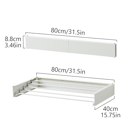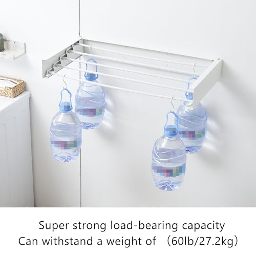 RFOUO - منشر غسيل يثبت على الحائط لتجفيف الملابس قابل للطي للاستخدام الداخلي والخارجي بعرض 80 سم و5 قضبان ألومنيوم يتحمل وزن 27.22 كيلوجرام، لون أبيض