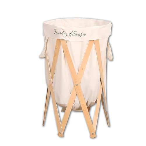 Generic - سلة ملابس - سلة غسيل حديثة قائمة بذاتها مع اطار خشبي، تصميم قابل للطي موفر للمساحة، مثالية لاحتياجات التخزين في المنزل او غرفة النوم او الحمام (لون ابيض)