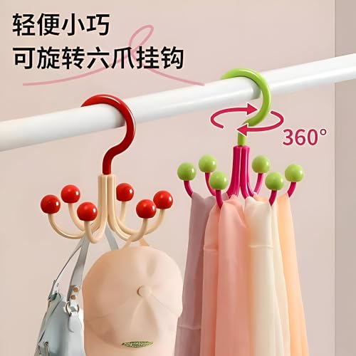 Generic - شماعة ملابس مع 6 خطافات - شماعة بلاستيكية دوارة 360 درجة لتنظيم خزانة الملابس، تزيل الفوضى، متوفرة بألوان متعددة