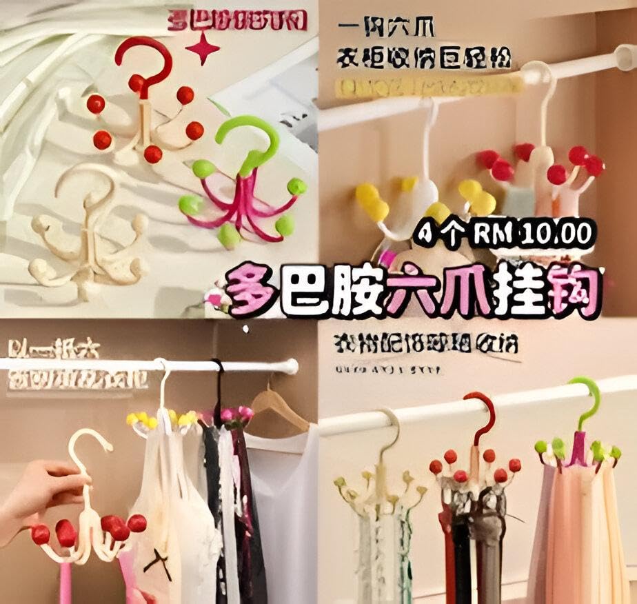 - تتميز هذه الشماعة البلاستيكية شديدة التحمل بستة خطافات مصممة خصيصًا لتنظيم حمالات الصدر والملابس الداخلية والملابس الرقيقة الأخرى، مما يضمن فصل كل منتج بدقة وسهولة الوصول إليه دون تشابك أو تجعد.