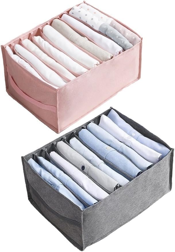 Generic - صندوق تخزين الملابس والجينز والقمصان والملابس، منظم مع 7 أدراج شبكية (رمادي)
