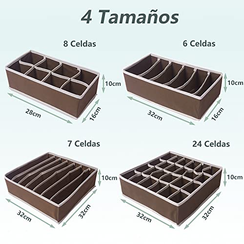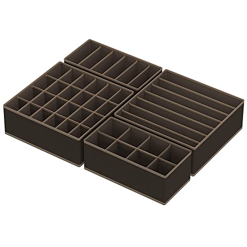 Dabi - صناديق منظمات ادراج ملابس بفواصل، مجموعة من 4 منظمات تخزين قابلة للطي، منظم تخزين للشرابات، حمالات الصدر/ربطات العنق/الملابس الداخلية/الربطات/السكارفات (كافي)