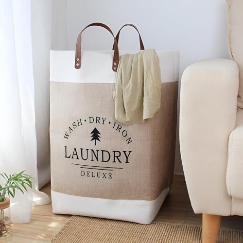 - تجمع سلة الغسيل هذه بمقابض جلدية أنيقة بين المظهر الجمالي والعملي، مما يضمن سهولة الحمل وإضافة لمسة من الرقي إلى أي مساحة مثل غرف النوم أو الحمامات أو غرف الغسيل.