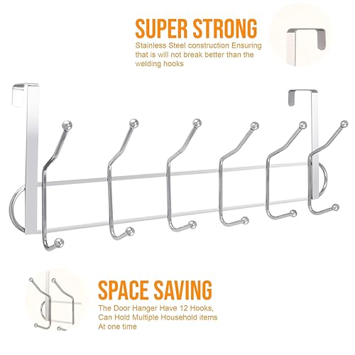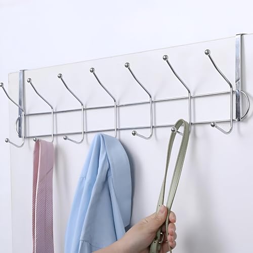 Generic - منظم ملابس - رف خطاف فوق الباب يتميز بـ 12 خطاف مزدوج قوي، مثالي للاستخدام في المنزل والمكتب، لمسة نهائية فضية أنيقة، يدعم حتى 8.8 باوند