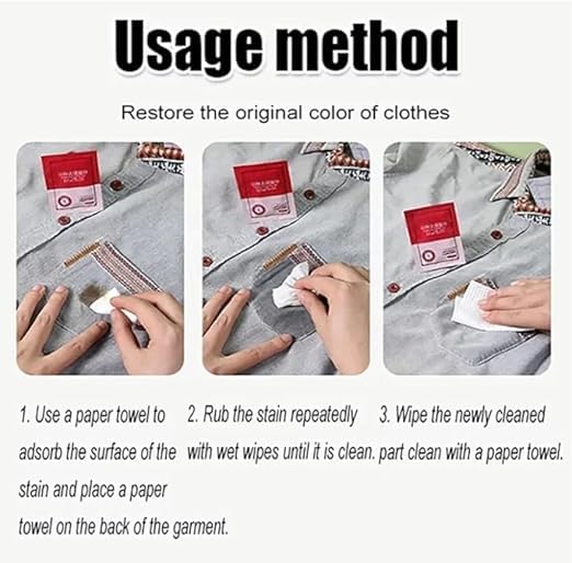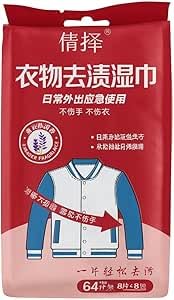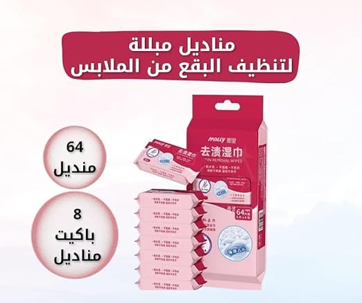 Generic - مناديل مبللة لازالة بقع الملابس - عبوة من 64 منديل تنظيف فوري للملابس والاقمشة والاحذية والاسطح