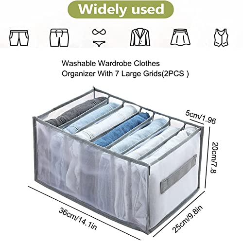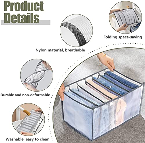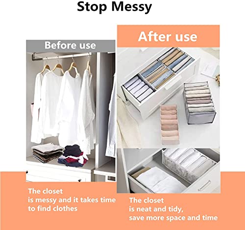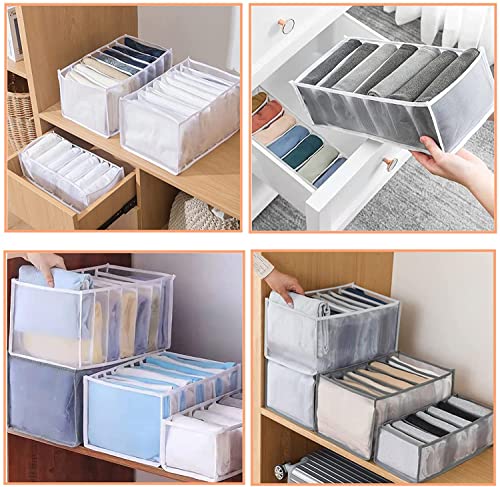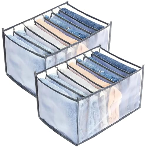 HELOVGE - صندوق منظم لتخزين الملابس 35 × 25 20 سم 7 مساحات تخزين مقسم ادراج للبناطيل بناطيل اللجينجز والتيشرتات والجينز رمادي من هيلوفيج