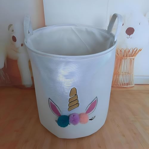 - صنع سبت الغسيل بنمط اليونيكورن هذا من القماش المتين، مما يمنحه تصميمًا متينًا وناعمًا في آن واحد لتخزين ملابسك بشكل آمن سواء لأغراض الغسيل أو التخزين، كما أنه مصمم ليدوم طويلًا.