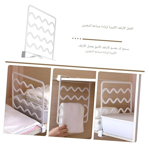- تم تصميم فواصل رفوف الخزانة البلاستيكية هذه خصيصًا لمساعدتك على تصنيف وتنظيم مساحة خزانتك بكفاءة، مما يسمح بالاستخدام الكامل للأرفف للملابس وحقائب اليد والكتب والمزيد.