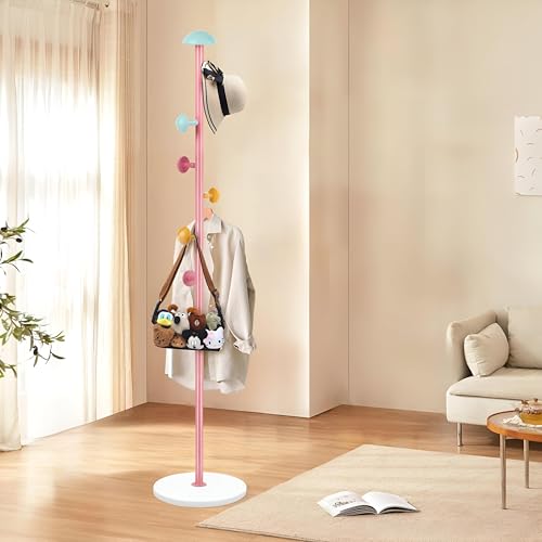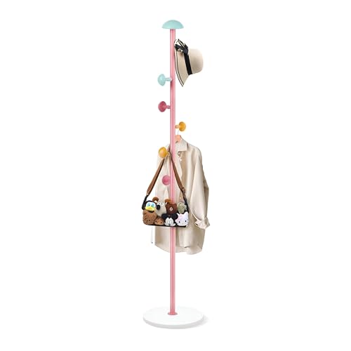 Generic - رف ملابس - شجرة معاطف معدنية قائمة بذاتها مع جزء علوي على شكل فطر، قاعدة دائرية قوية، متعدد الاستخدامات للقبعات والحقائب والملابس، منظم رواق صغير بلمسة نهائية باللون الزهري