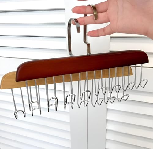 Generic - رف ملابس - شماعة خشبية متعددة الاستخدامات مع 8 خطافات معدنية للأوشحة وربطات العنق والاحزمة والملابس الداخلية والحقائب، مثالية لتنظيم مساحة خزانة ملابسك بكفاءة (2)