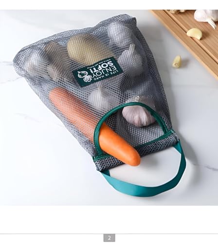 - يمكن لهذه الحقيبة تخزين مجموعة واسعة من المنتجات، من الفواكه مثل التفاح والطماطم والعنب إلى الخضروات مثل البصل والثوم. كما أنها مثالية لتخزين الأحذية ومستحضرات التجميل وغيرها من الأشياء الصغيرة، مما يوفر مرونة ممتازة لأغراض متعددة.