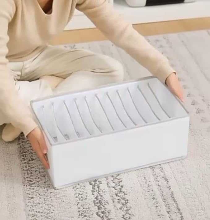 Generic - منظم ملابس كتان بناطيل جينز جوارب فاصل أدراج الدولاب والتي شيرت لون أبيض