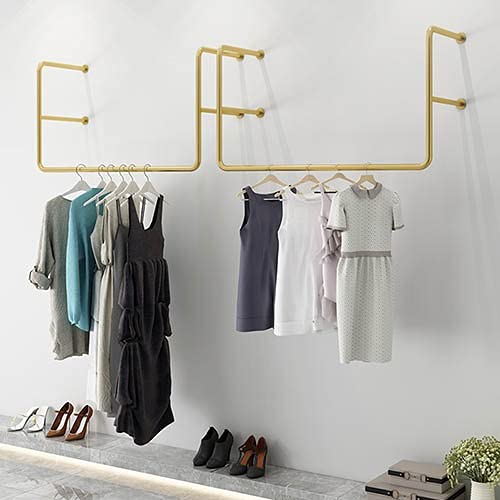 generic - رفوف عرض لمتجر الملابس رف شماعات ملابس شماعة مثبتة على الحائط قدرة تحمل قوية الزفاف مراكز التسوق اللون: جولد مقاس: 1 متر × 80 سم معدن ذهبي