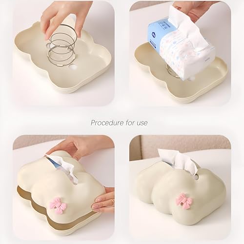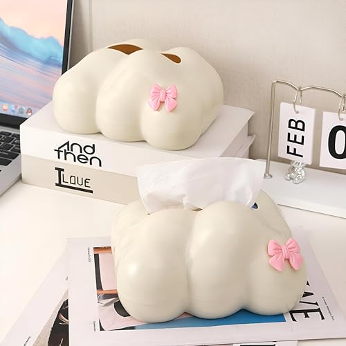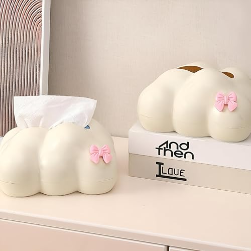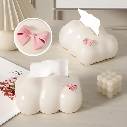 Generic - صندوق مناديل كلاود - موزع مناديل رائع على شكل سحابة مع فيونكة، مثالي لطاولة الزينة أو المنضدة أو السيارة، يضيف لمسة من النزوة إلى ديكور أي غرفة (قطعتان)
